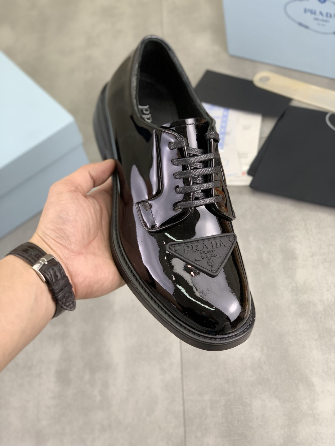 This shoes is AAAAA 1:1 quality (superb). Materials used are identical to the original ones. Prada trademark marks are indistinguishable to the authentic. Photos take by actual shoes, what you receive will be 100% same with our photos.