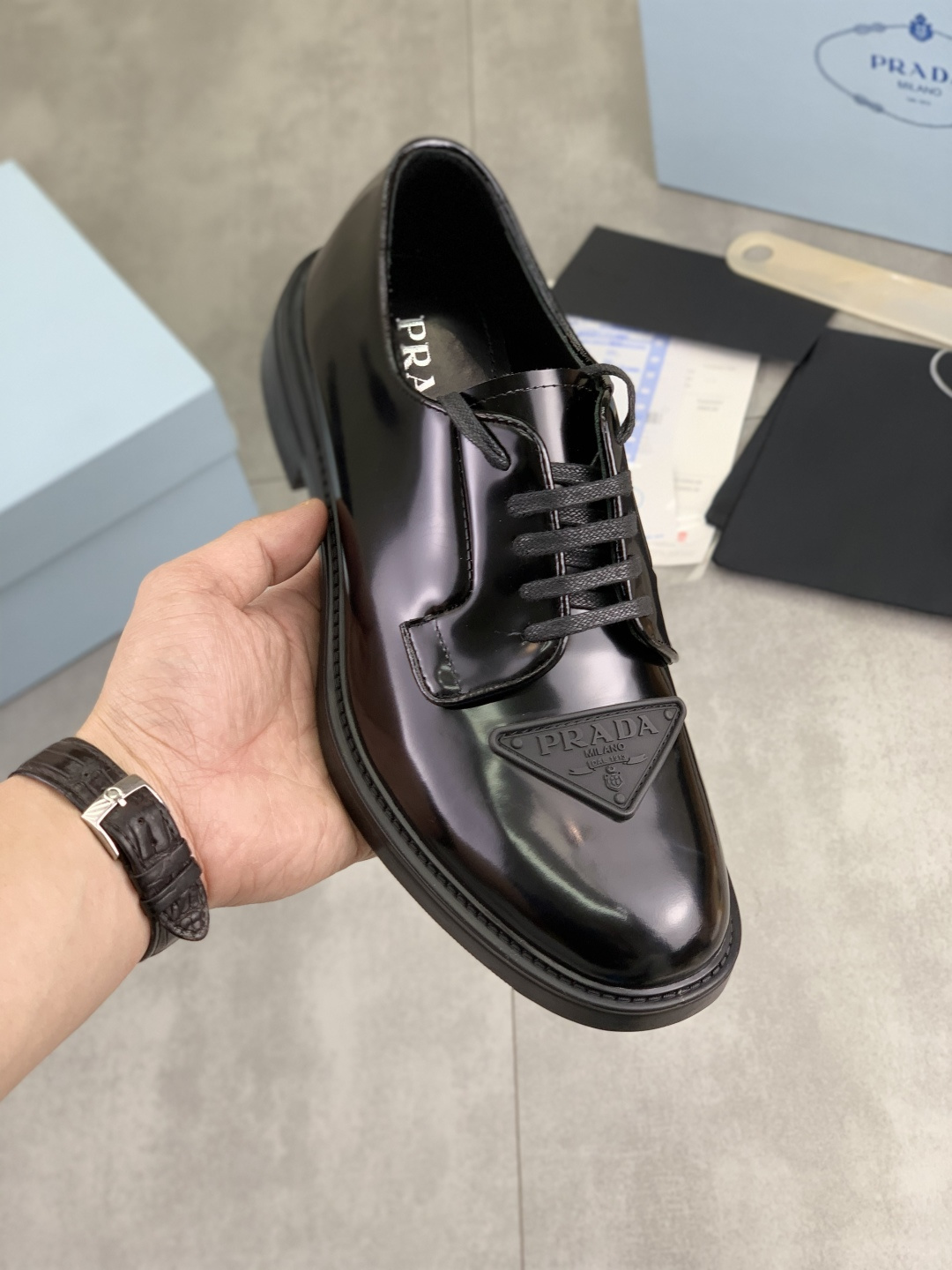 This shoes is AAAAA 1:1 quality (superb). Materials used are identical to the original ones. Prada trademark marks are indistinguishable to the authentic. Photos take by actual shoes, what you receive will be 100% same with our photos.