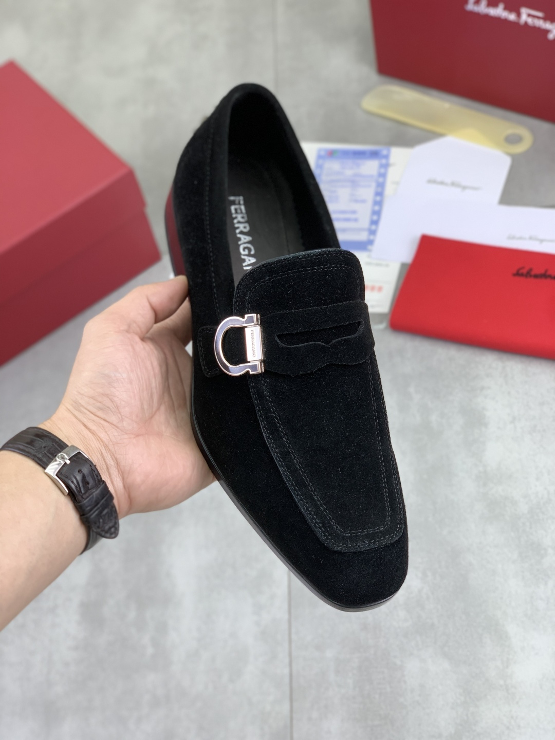 This shoes is AAAAA 1:1 quality (superb). Materials used are identical to the original ones. Salvatore Ferragamo trademark marks are indistinguishable to the authentic. Photos take by actual shoes, what you receive will be 100% same with our photos.