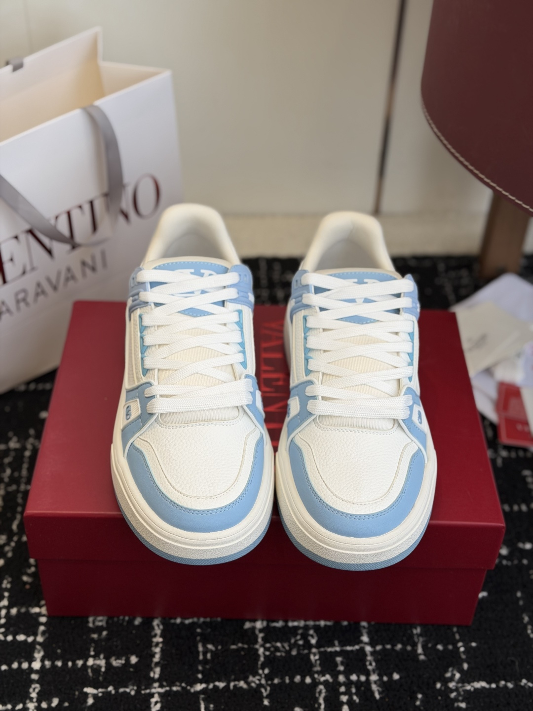 This shoes is AAAAA 1:1 quality (superb). Materials used are identical to the original ones. Valentino trademark marks are indistinguishable to the authentic. Photos take by actual shoes, what you receive will be 100% same with our photos.