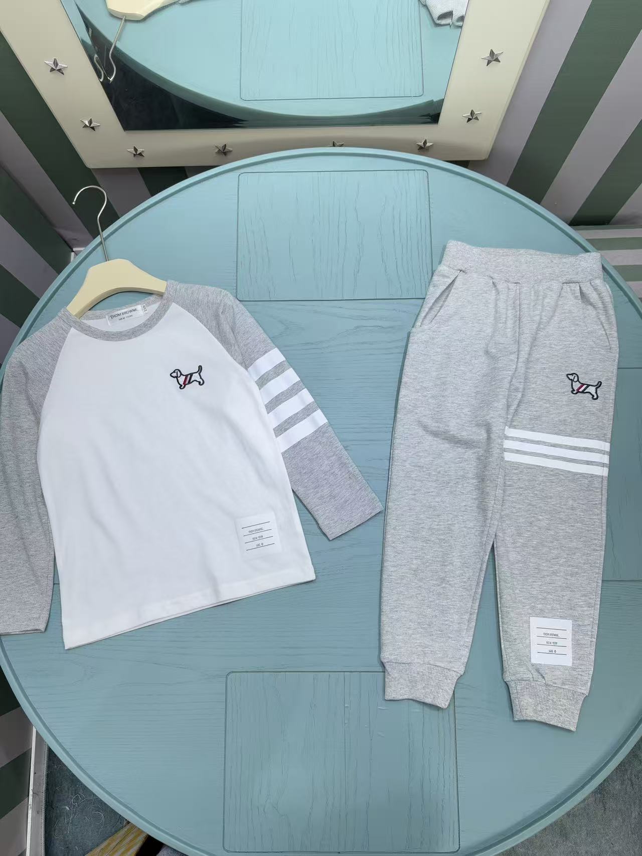 This children's clothes is AAAAA 1:1 quality (superb). Materials used are identical to the original ones. Thom Browne trademark marks are indistinguishable to the authentic. Photos take by actual children's clothes, what you receive will be 100% same with our photos.
