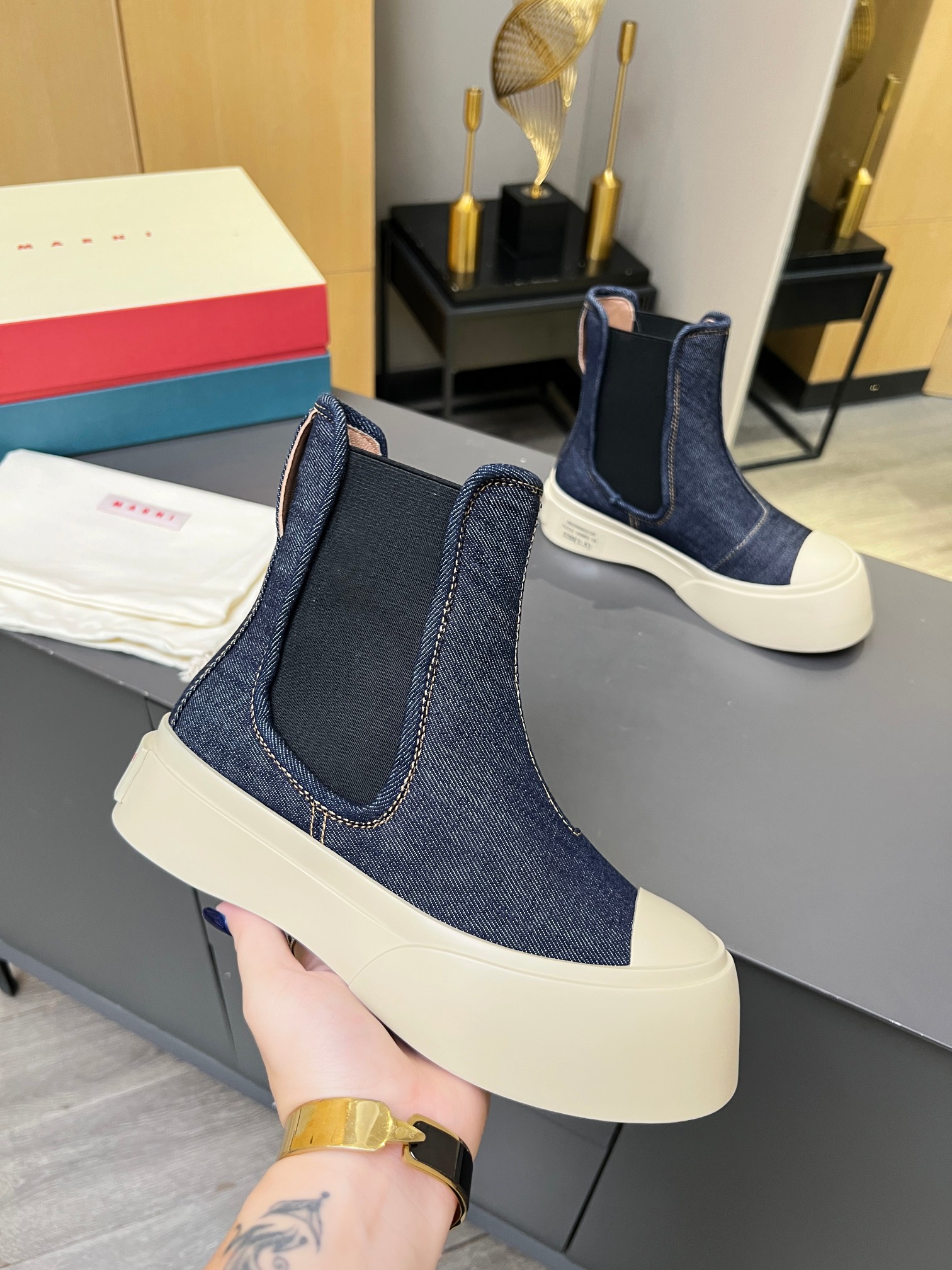 This shoes is AAAAA 1:1 quality (superb). Materials used are identical to the original ones. Marni trademark marks are indistinguishable to the authentic. Photos take by actual shoes, what you receive will be 100% same with our photos.